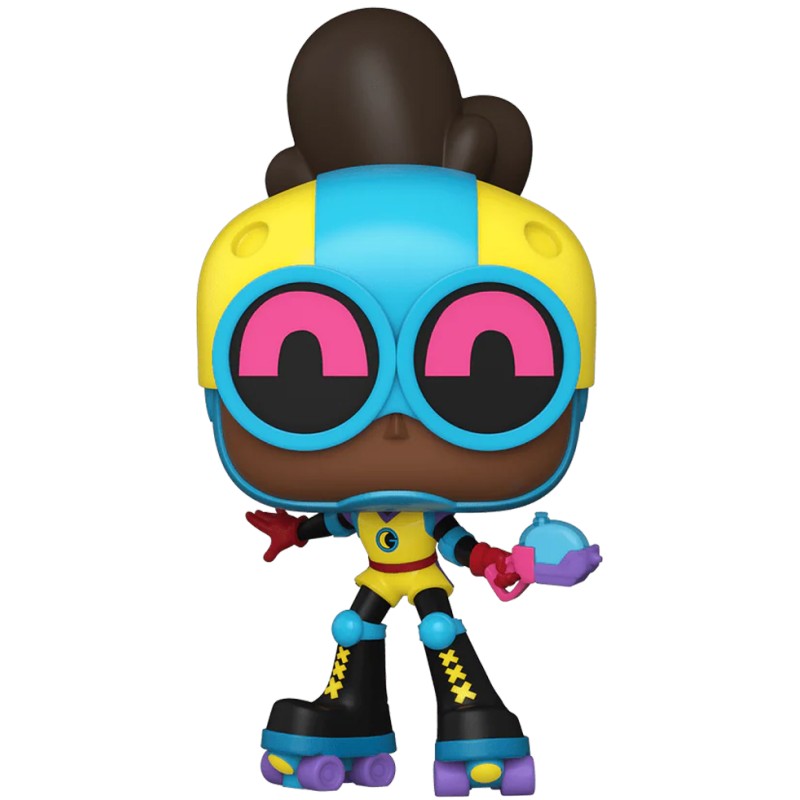 Intrând în acțiune cu rolele, Moon Girl își îmbracă costumul de supereroină vibrant și colorat, cu un gadget în mână.