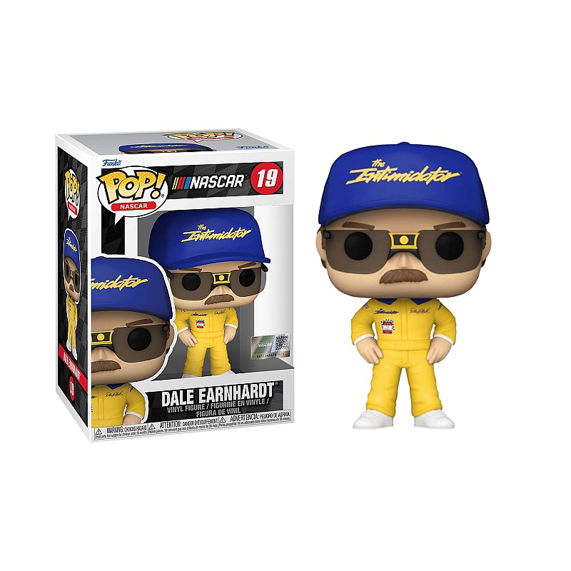 Participă la cursa si vei ajune la linia de sosire alaturi de Pop! Dale Earnhardt. Acesta este imbracat in uniforma sa galbenă Wranglers.