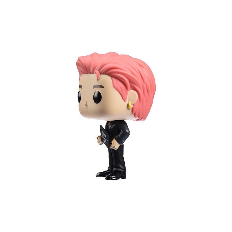 Acest Pop! il prezinta pe RM din BTS, imbracat elegant, avand accesorii aurii si tinand un semn cu numele sau in maini.
