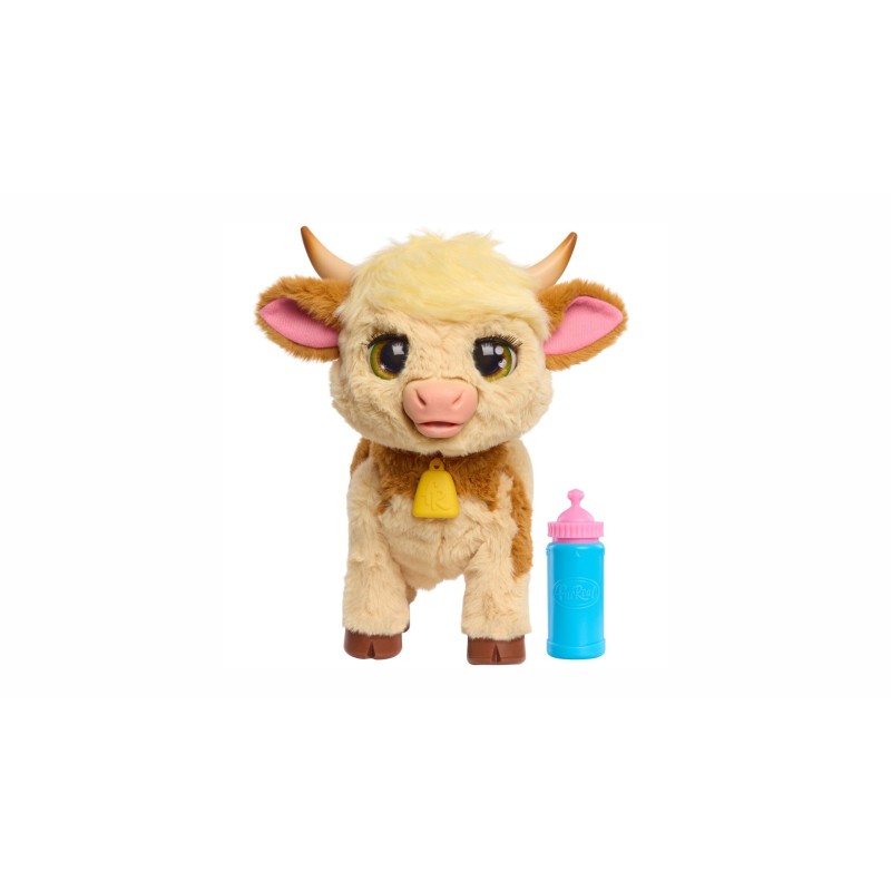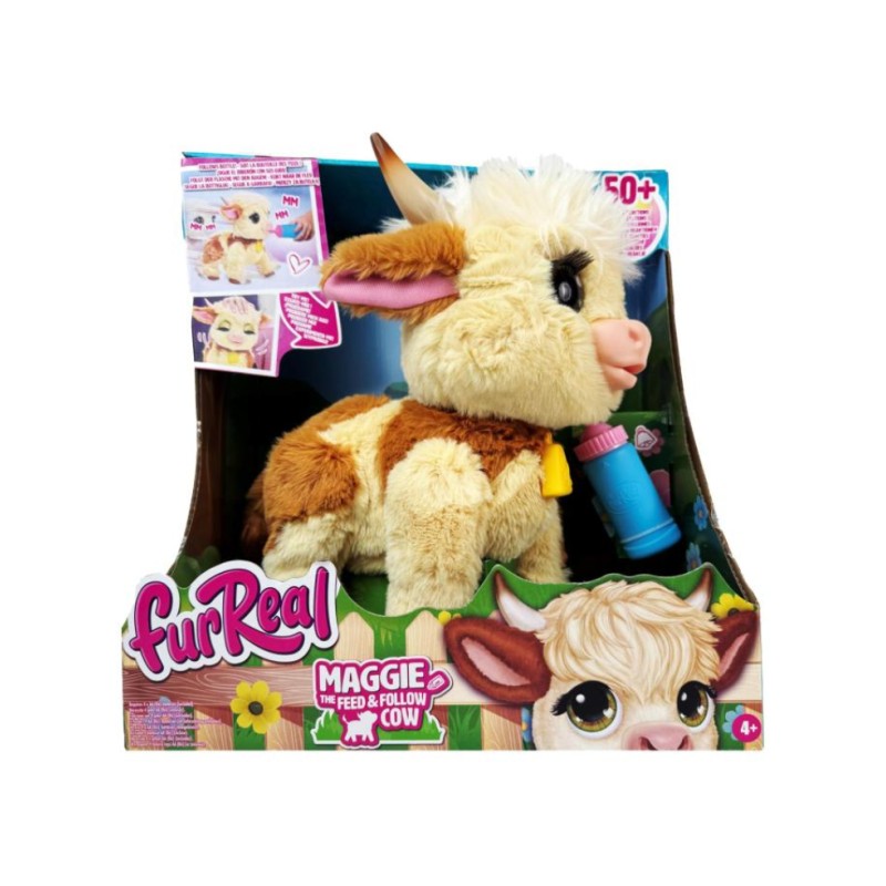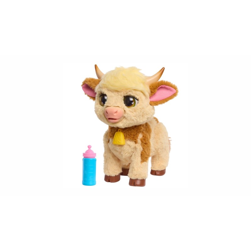Această adorabilă mini-vacă de fermă din Highlands scoțiene are aproximativ 28 cm înălțime și reacționează cu peste 50 de combinații de sunete și mișcări. Pune comutatorul pe „On” și începe imediat să te joci.