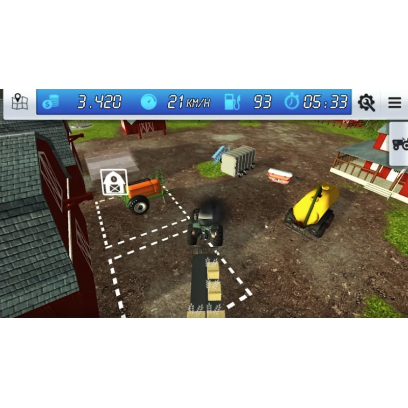Conduceți mașini, gestionați resursele și experimentați o gamă largă de activități agricole. Puteți ara, fertiliza, recolta cereale, crește vaci, cultiva livezi de fructe și cumpăra și vinde resurse.