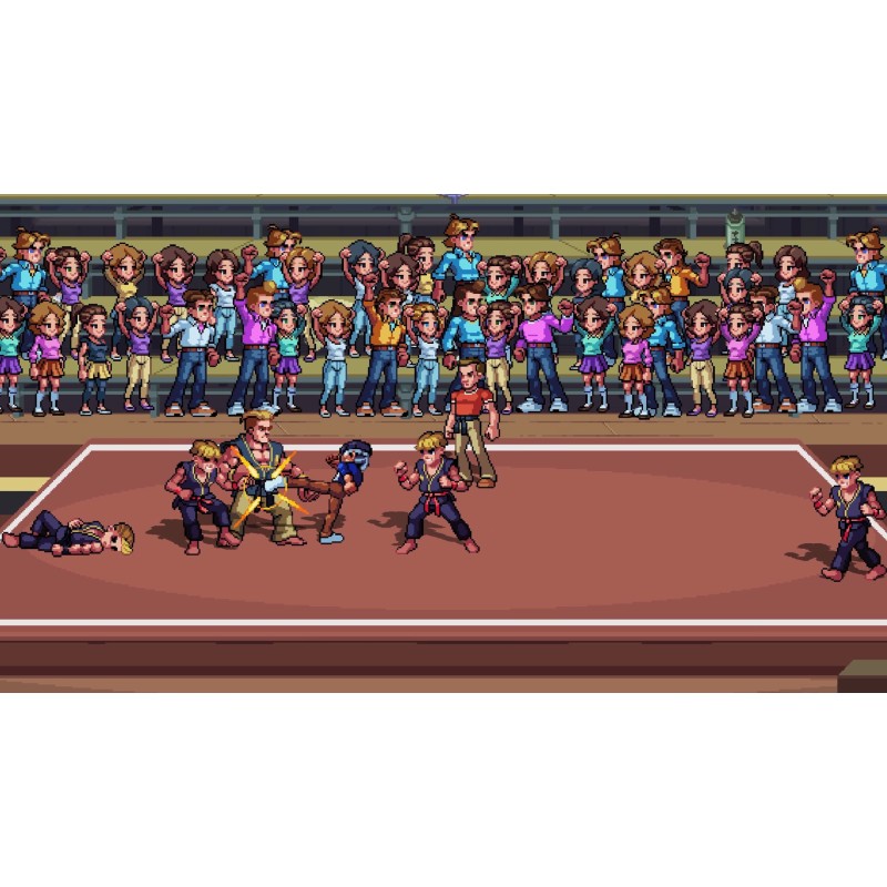Trecând prin locațiile iconice ale primelor trei filme clasice Karate Kid din anii 1980 vei ieși din dojo și vei păși pe străzile din West Valley și Okinawa în timp ce te vei lupta cu valuri de inamici în această aventură de tip beat 'em up, side-scrolling și pixel art.