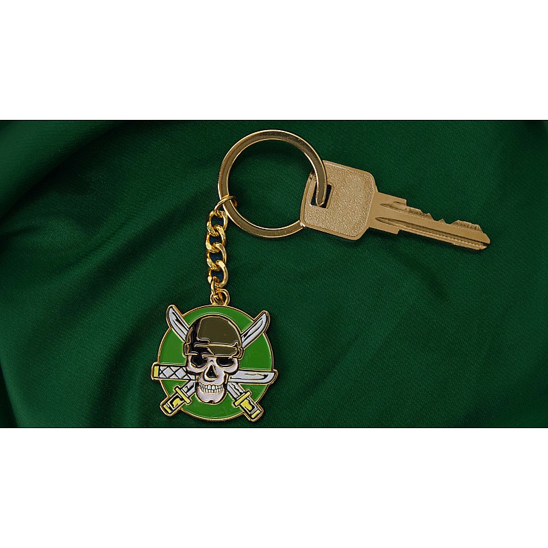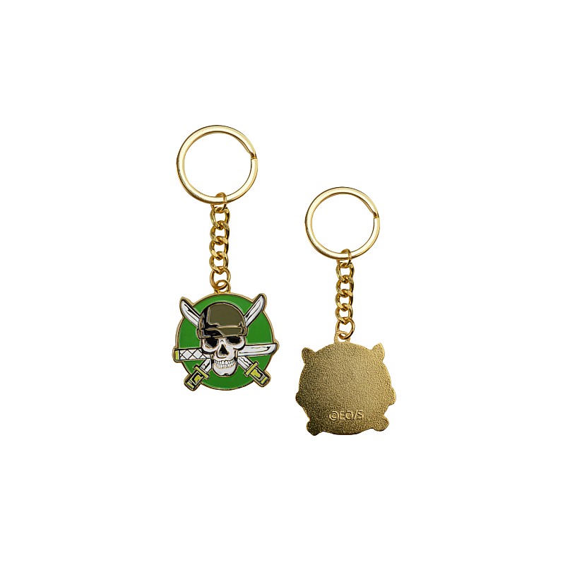 Ornat cu un finisaj auriu, acest breloc se mândrește cu infamul Jolly Roger al lui Zoro.