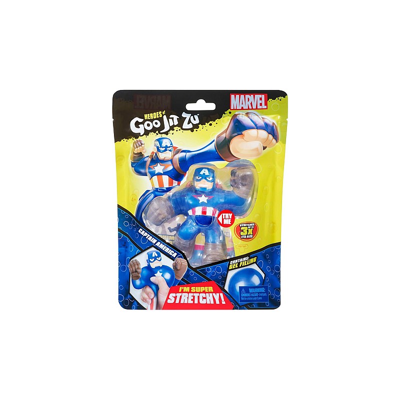 Forță legendară, distracție elastică. Adaugă un nou nivel de aventură în universul tău de joacă cu Goo Jit Zu Captain America Hero Pack.