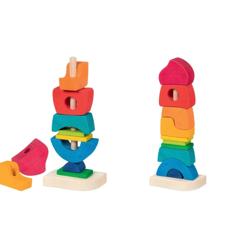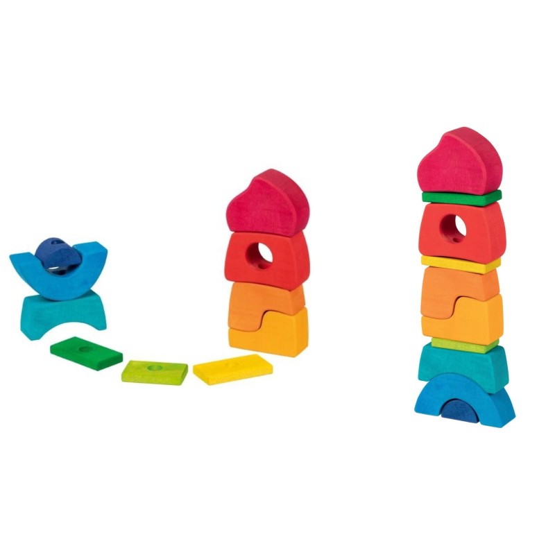Castelul nostru de stivuire deschide noi posibilități de stivuire și de sortare. Blocurile de construcție cu forme diferite pot fi stivuite pe tija de lemn, dar sunt potrivite și pentru a fi jocul liber!