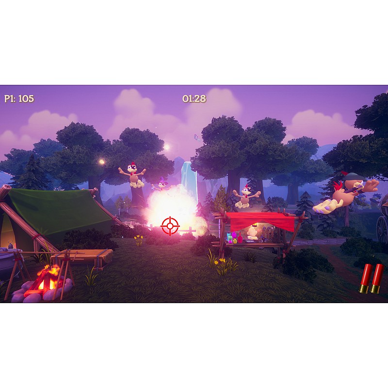 Încarcă rapid muniția pentru a te bucura de o acțiune de tragere maximă, iar găinile vor trebui fie să-și lase penele jos, fie să sfârșească prăjite la proțap!