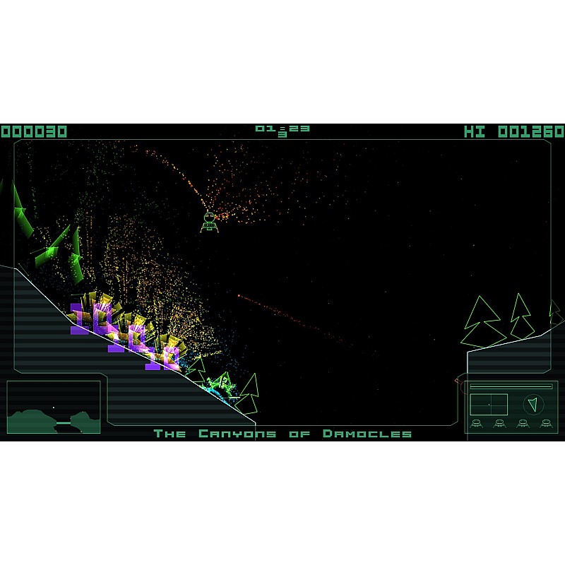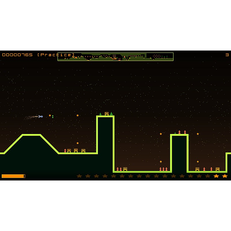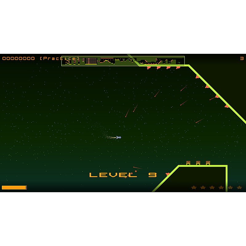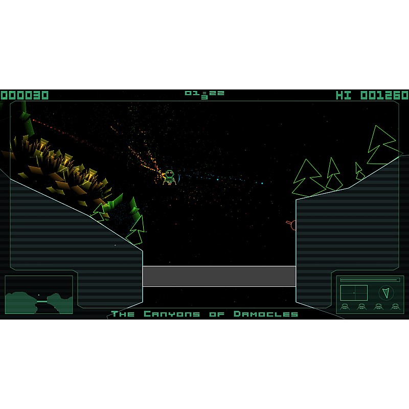 - Pilotați-vă nava pe zece terenuri din ce în ce mai dificile, evitând în același timp diferitele poziții de arme, rachete și răufăcători
