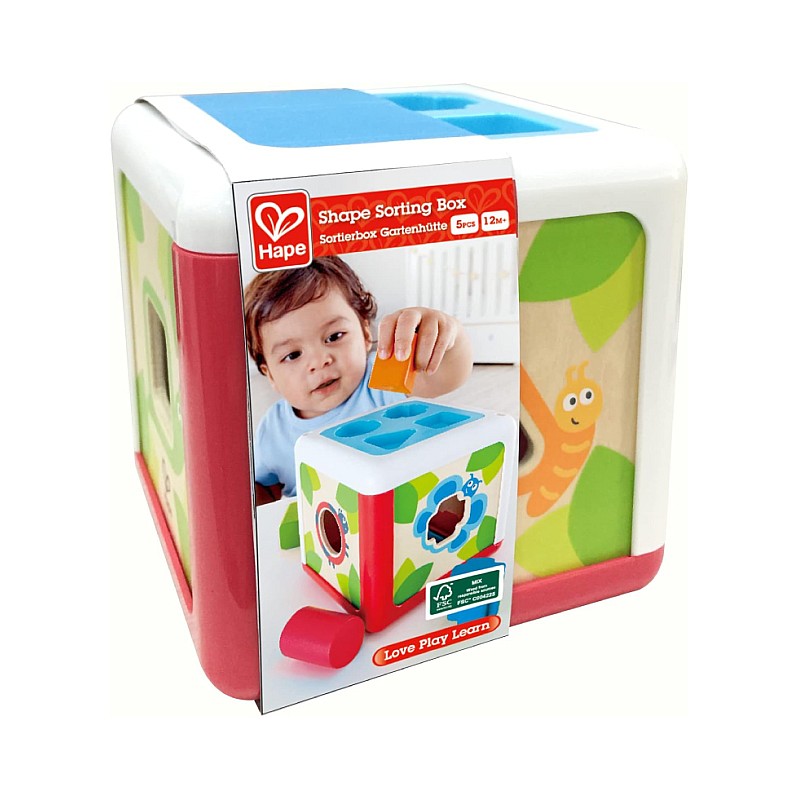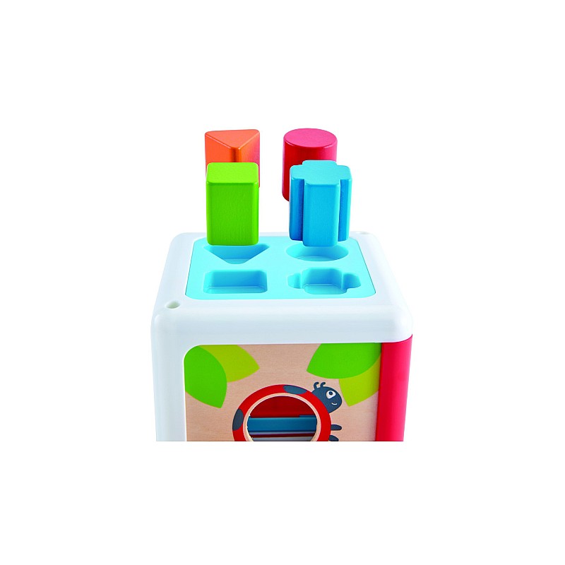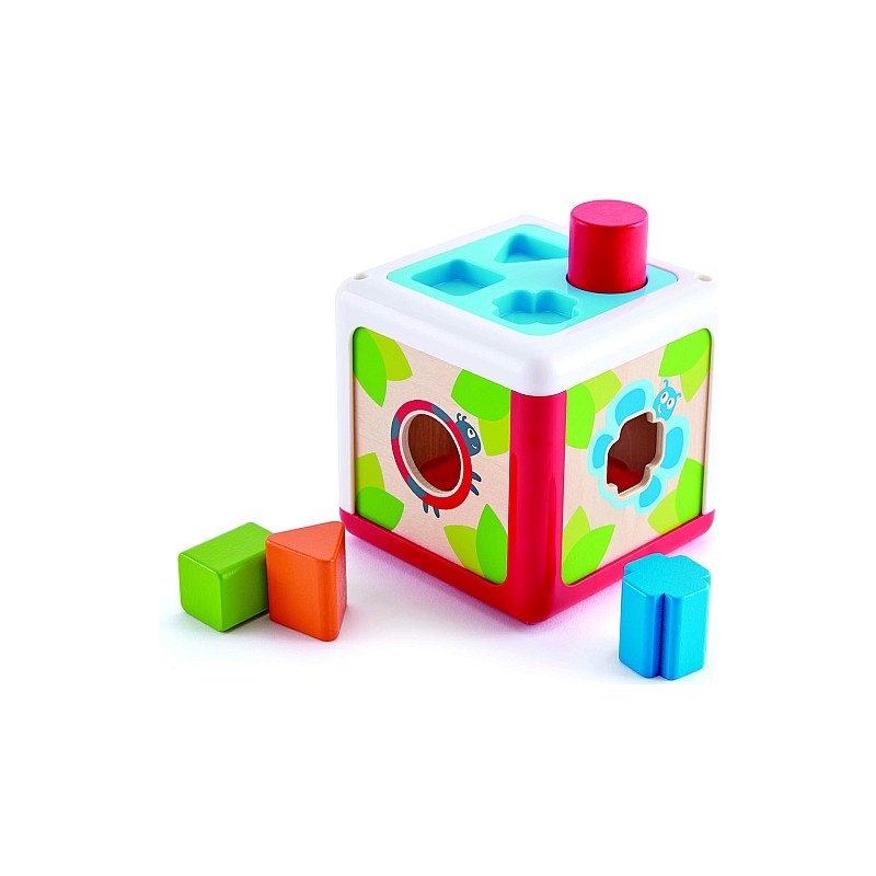 Include cutie si patru forme: cruce, cerc, patrat si triunghi. Fiecare forma corespunde unei creaturi de gradina diferite: buburuza, paianjen, fluture si melc.