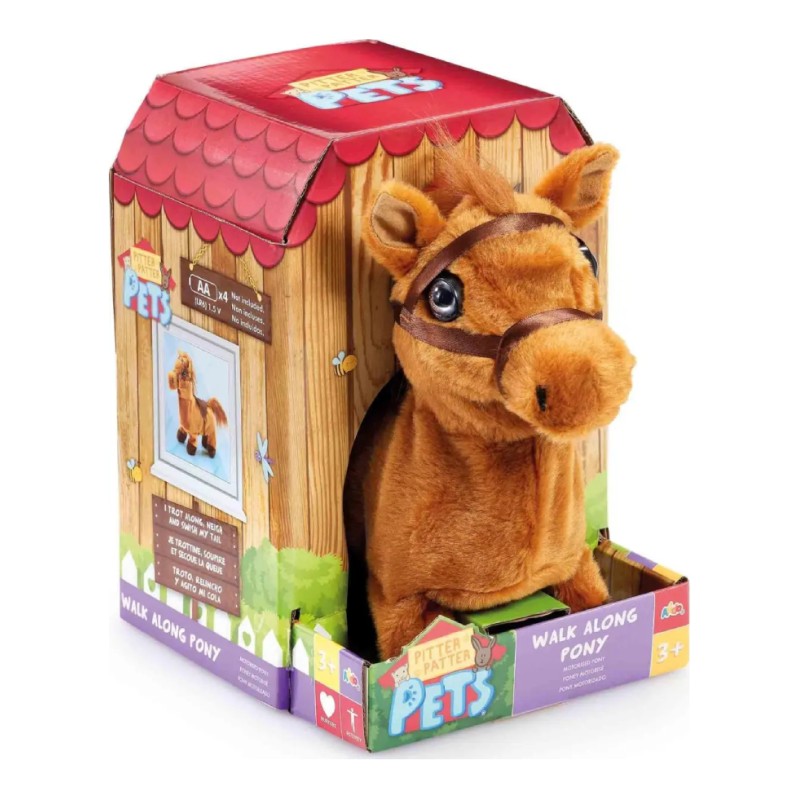 Happy Pets Walk Along Pony este o jucărie interactivă concepută pentru copii, care oferă o experiență distractivă și captivantă în timp ce aceștia se joacă cu poneiul.
