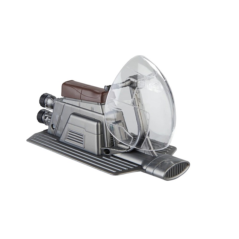 Vine cu vehiculul Sky-Cycle inspirat din benzi desenate pe care poate sta figurina și 6 accesorii.
