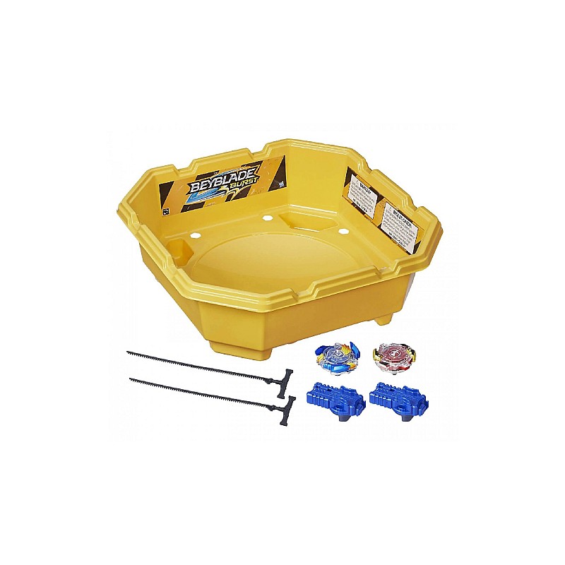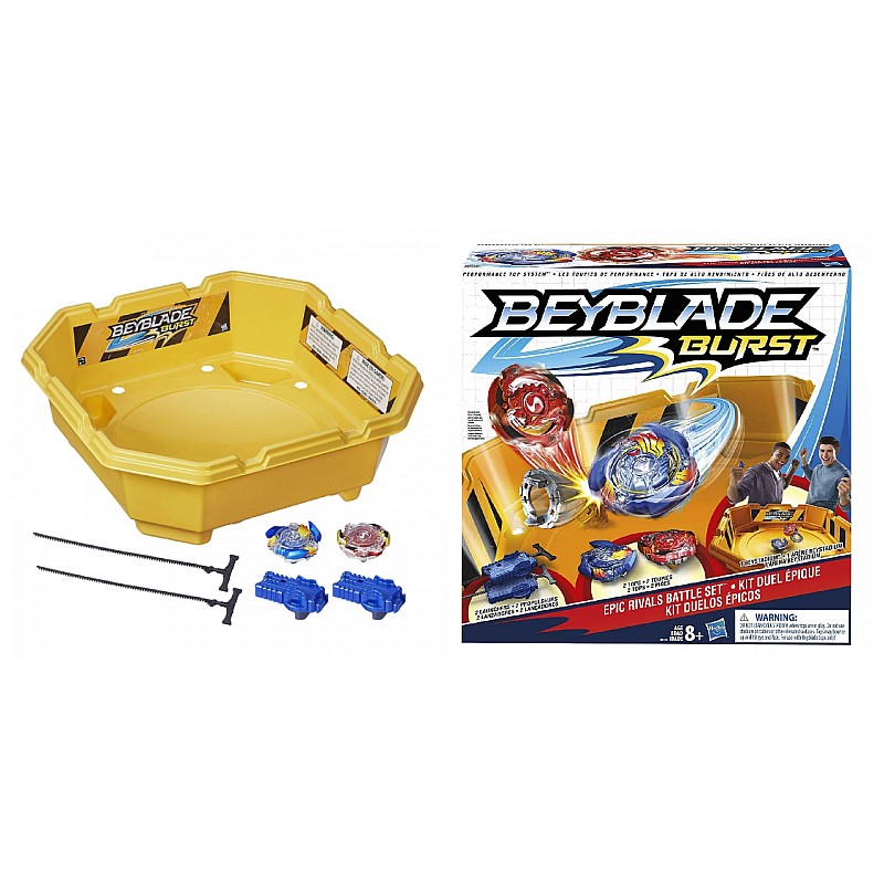 Setul de luptă Beyblade Burst Epic Rivals include 2 vârfuri Beyblade Burst [constând din 1 strat de energie Valtryek V2 (alias Victory Valtryek), 1 disc de forjă D01 (alias Boost), 1 vârf de performanță TA06 (alias Variable), 1 Spryzen S2 (alias Storm Spryzen) Energy Layer, 1 D02 (alias Knuckle) Forge Disc, 1 TB03 (alias Unite) Performance Tip], 2 lansatoare Beyblade Burst și 1 Beyblade Burst Beyblade Burst Beystadium.