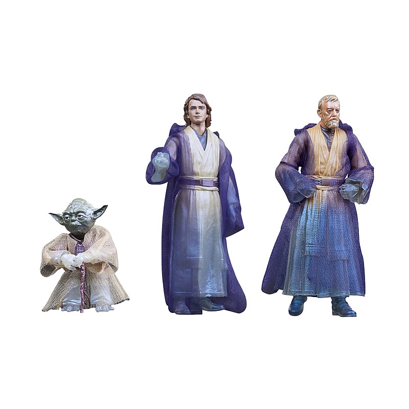 Figurinele Star Wars The Black Series de colecție fac trimitere inapoi la momentul iconic din film, când Luke Skywalker este martor la fantomele Forței ale oamenilor care l-au modelat: Anakin, Obi-Wan și Yoda.