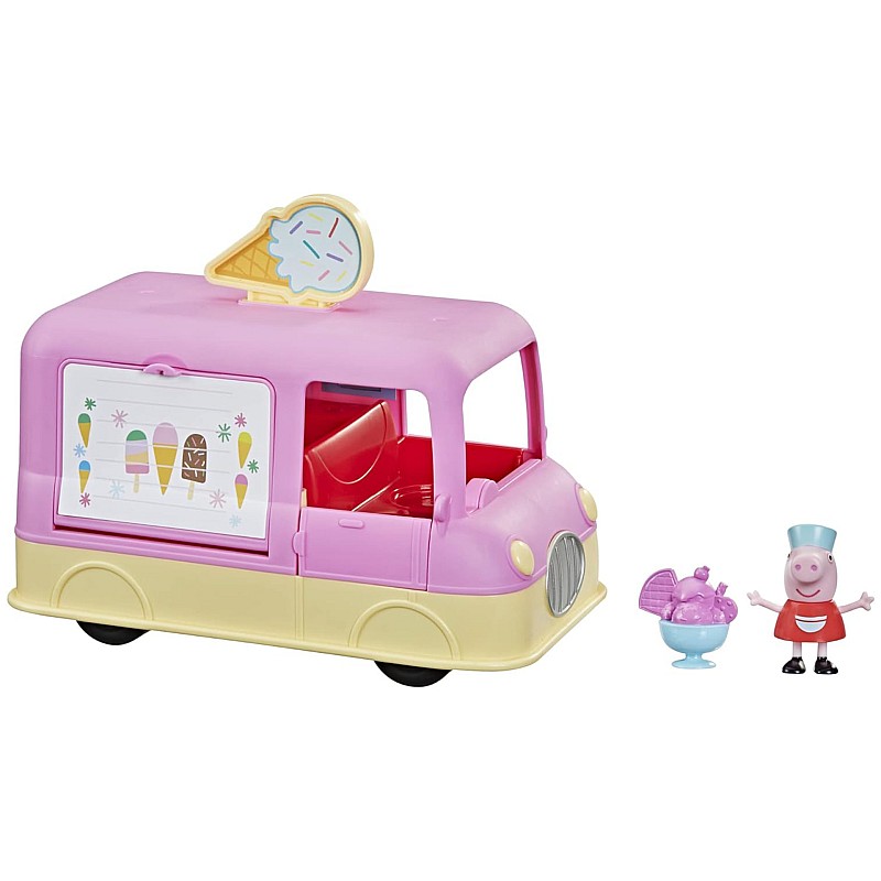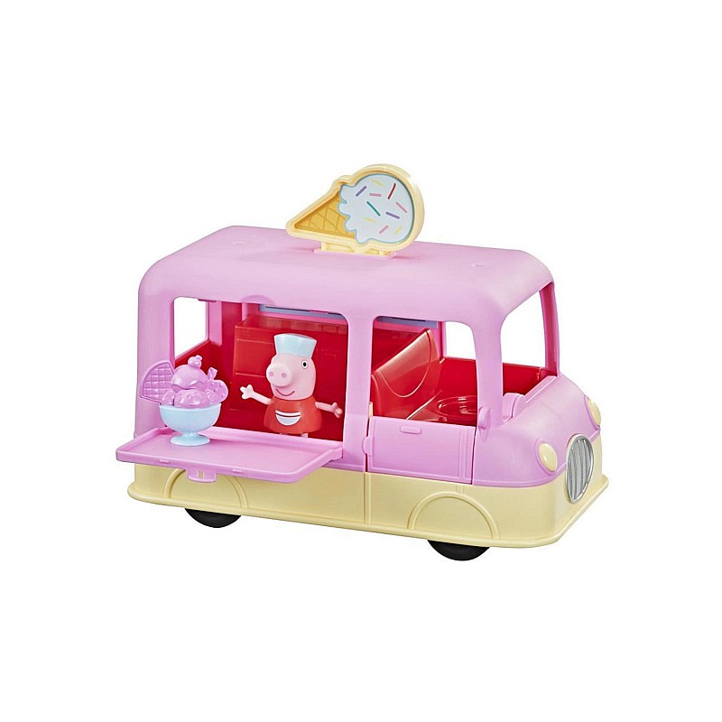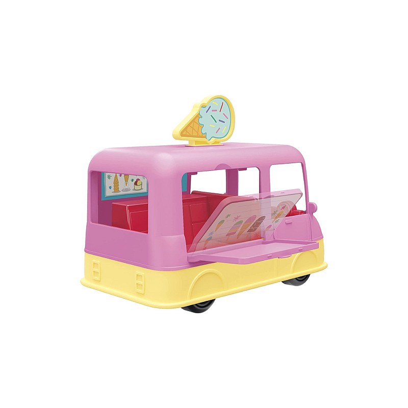 Figurina Peppa poate încăpea în camionetă, astfel încât copiii își pot imagina că ea le servește înghețată prietenilor ei.