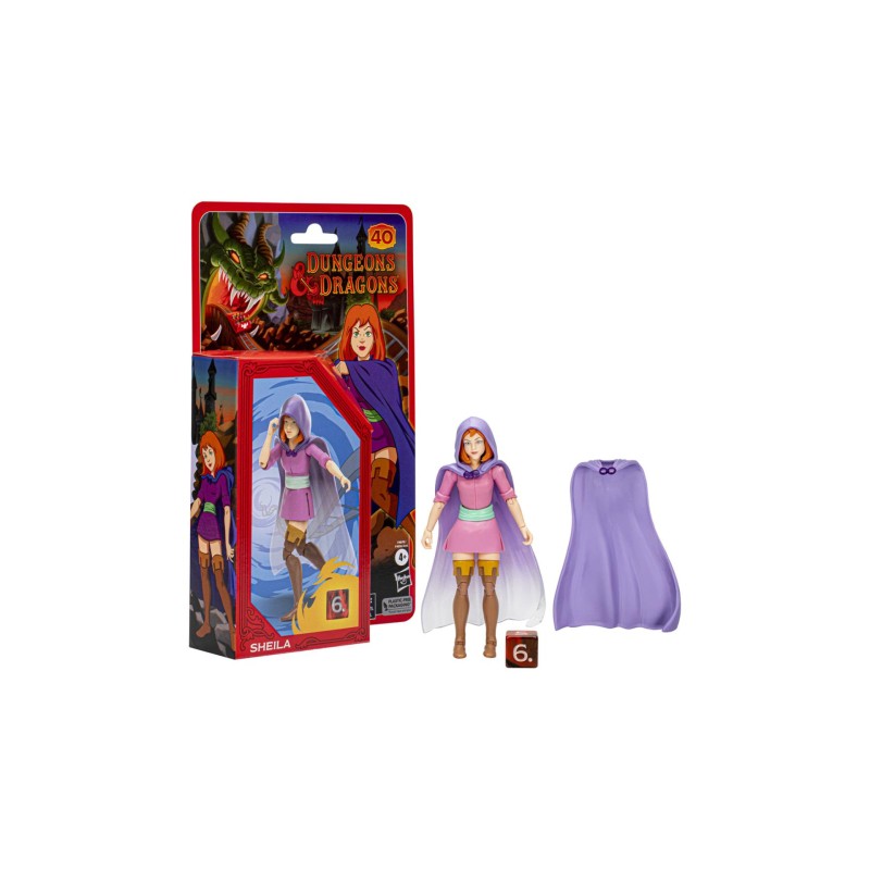 Această figurină de acțiune Sheila conține doua accesorii: pelerina de invizibilitate și glugă, precum și un d6 care este exclusiv pentru această figurină Cartoon Classics.