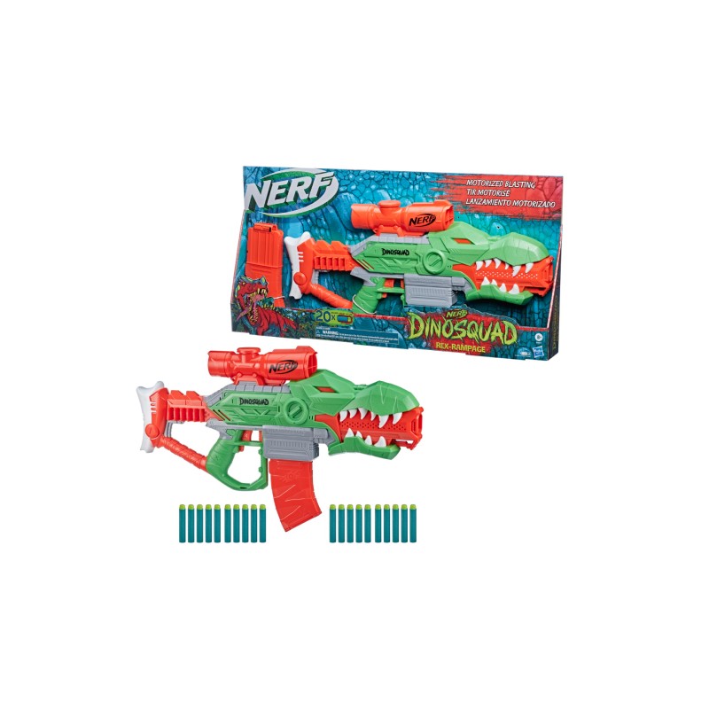 Acest blaster Rex-Rampage are designul cool al unui T-Rex.