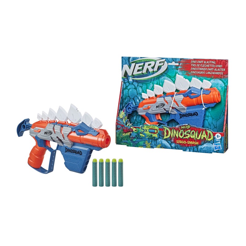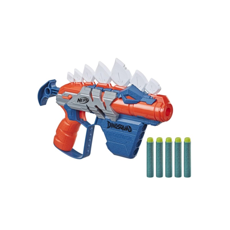 Rămâneți pe poziție cu blasterul Nerf DinoSquad Stego-Smash. Are un design minunat de dinozaur, captând aspectul unui dinozaur Stegosaurus.