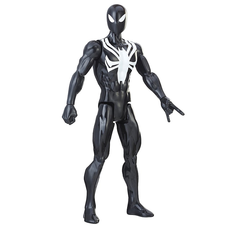 Cu această figurină Black Suit Spider-Man, fanii pot recrea bătăliile dezordonate.