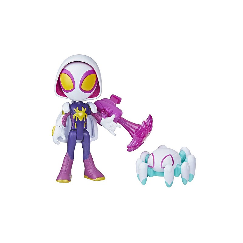 Preșcolarii își pot imagina aventuri epice în rolul lui Ghost-Spider, lucrând cu echipa Spidey și doborându-și dușmanii cu această figurină de acțiune cu accesorii.