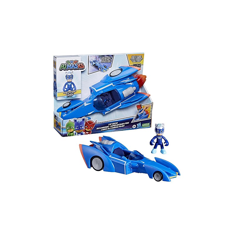 Bazată pe sezonul 1 al serialului PJ Masks Power Heroes, jucăria Cat Racer este gata să intre în acțiune cu o flacără luminoasă uimitoare și sunete incitante!