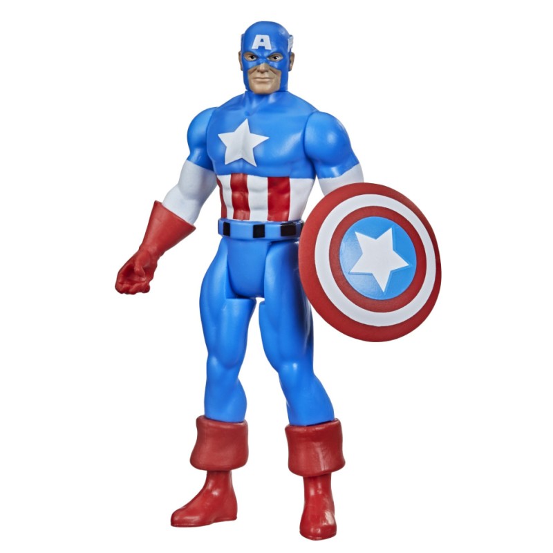 Această figurină Retro 375 Collection Captain America are un design, detalii și articulații de calitate superioară pentru a fi pozată și expusă într-o colecție Marvel.