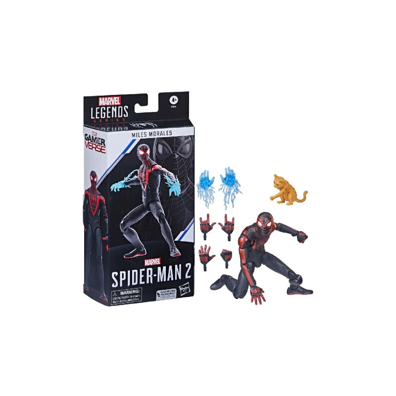 Figurina este detaliată pentru a arăta ca personajul Miles Morales din jocul video Marvel’s Spider-Man 2, oferind detalii premium, mai multe puncte de articulare și 7 accesorii inspirate de jocuri, inclusiv mâini alternative gata de sling web.