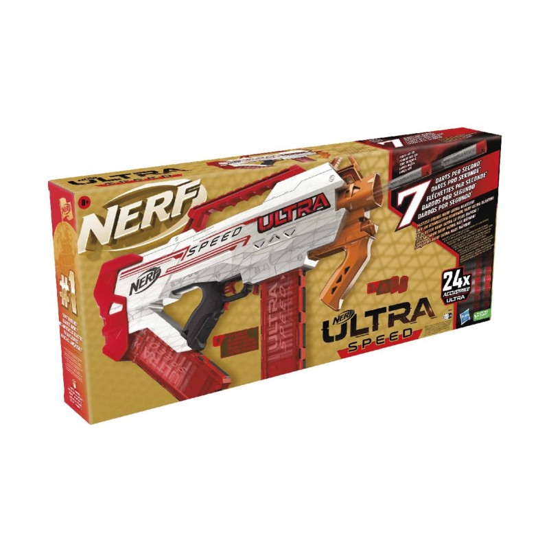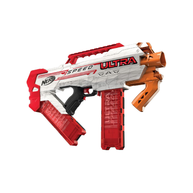 Nerf Ultra Speed este cel mai rapid blaster Nerf Ultra care trage! Trage până la 7 săgeți pe secundă cu acest blaster motorizat complet automat.