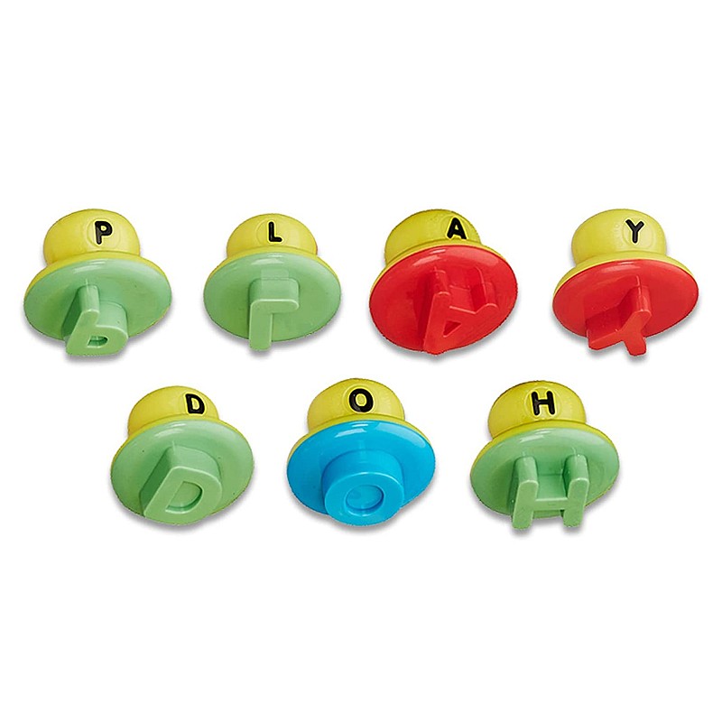 Concepute pentru copii ștampilele groase și stiloul sunt ideale pentru ca mânuțele mici să ștampileze și să scrie litere în compusul Play-Doh, în timp ce își exersează abilitățile motorii.