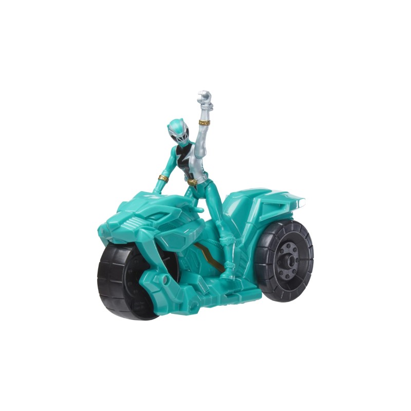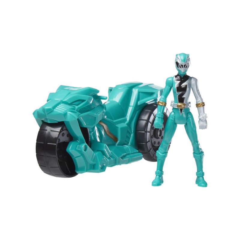 Motociclistul Sabertooth Battle Rider are roți cu rotire liberă, astfel încât acțiunea Rip N Go să o poată propulsa pe Dino Fury Green Ranger mai departe.