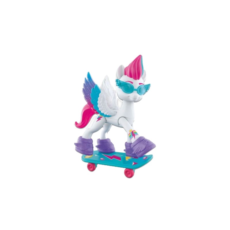 Include o figurină articulată a poneiului alb Zipp Storm, cu părul roz și albastru turnat în stilul ei scurt caracteristic.