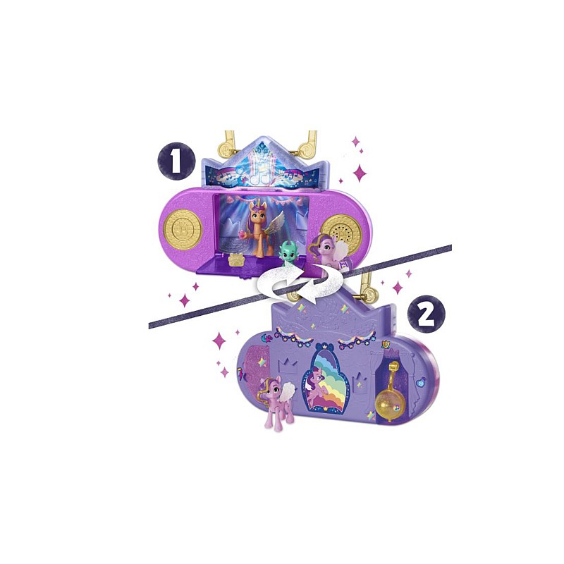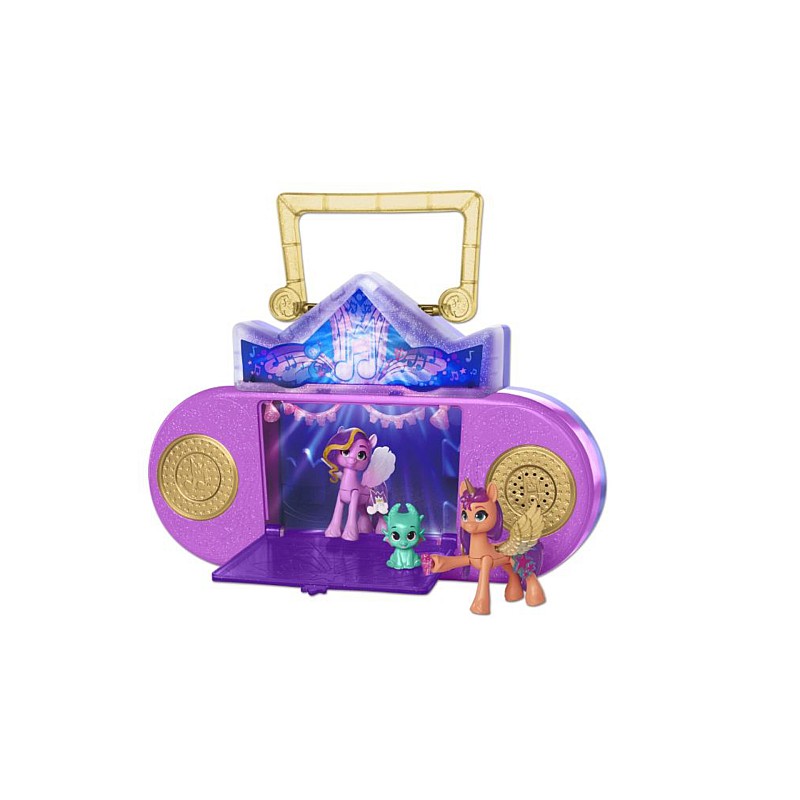 Pune poneiul pe scenă pentru a începe muzica! Include părți din 2 cântece din desenul animat.