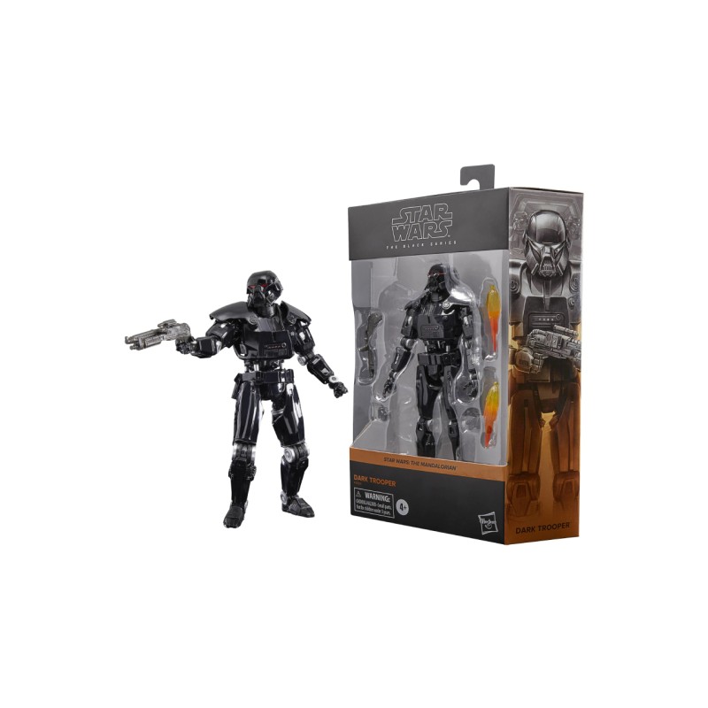 Figurina Black Series este detaliată pentru a semăna cu personajul Dark Trooper din filmul The Mandalorian, având detalii premium și multiple puncte de articulare.