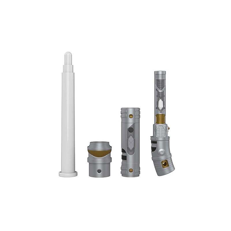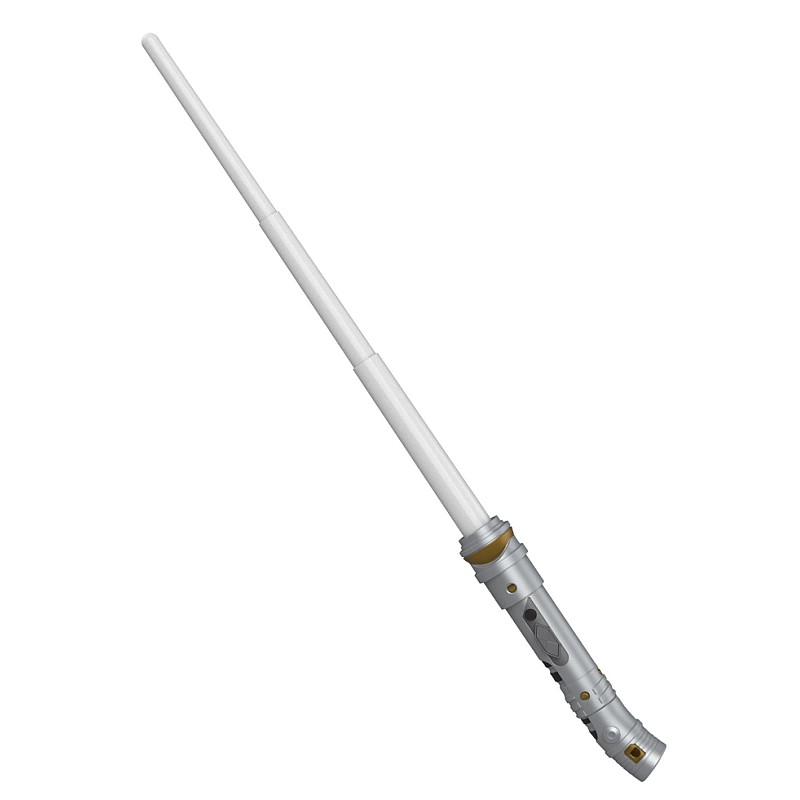 Acesta sabie laser pentru copii are un design inspirat de personaj, o lamă albă extensibilă și luminoasă care se deschide și efecte sonore electronice inspirate de divertisment.