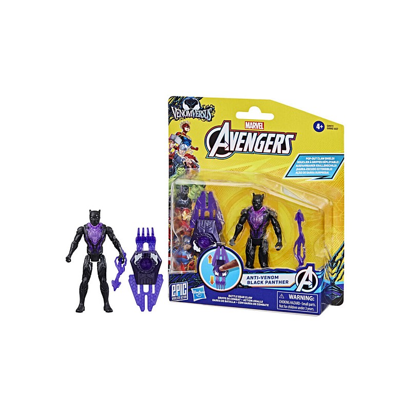 Această figurină de acțiune Marvel Anti-Venom Black Panther face parte din seria exclusivă Epic World of Action de la Hasbro și prezintă un design și decorațiuni inspirate de Venom, precum și membre poziționabile.