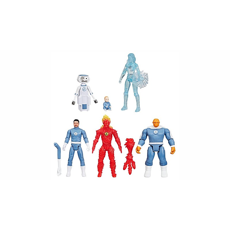 Pachetul reunește membrii echipei Fantastica Patru / Fantastic Four, cu figuri care permit joacă și colecție: Mister Fantastic, Invisible Woman, Human Torch, The Thing.