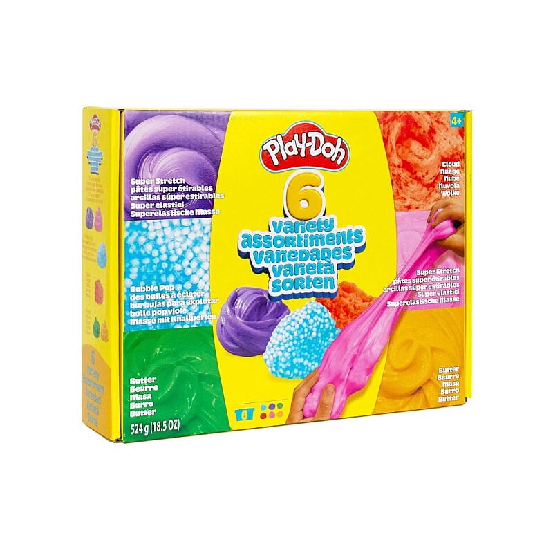 Cutia Play-Doh Multi Variety Box cu 6 bucăți este cutia perfectă pentru copiii cărora le place să exploreze, să simtă și să creeze.