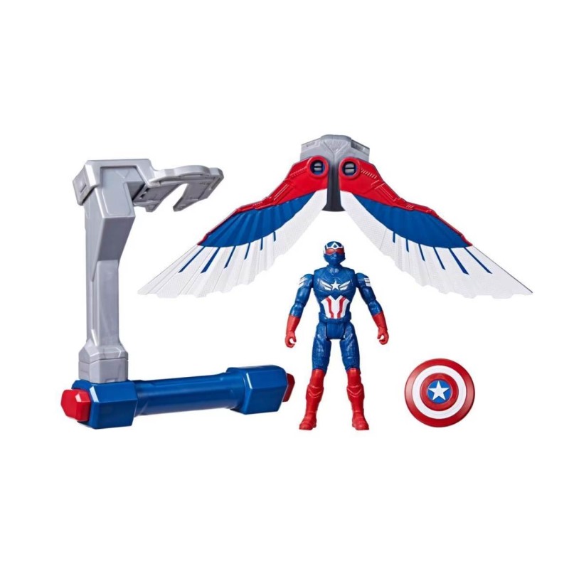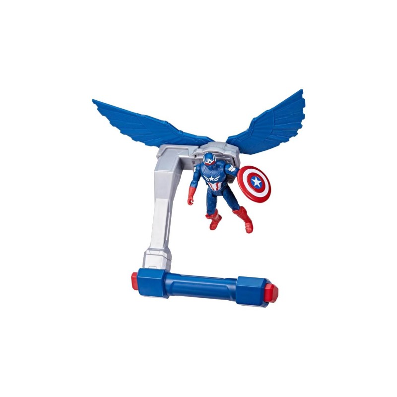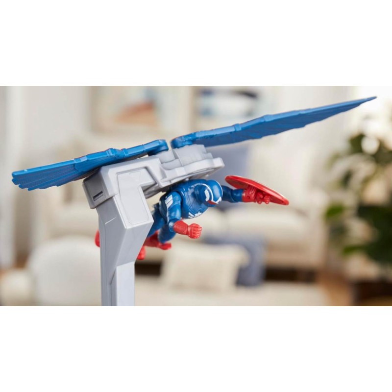 Poziționați aripile jucăriei Captain America pentru modul Glide și acțiune de zbor, sau împingeți-le înainte pentru modul Strike și imaginați-vă atacuri la mare viteză asupra altor figurine.