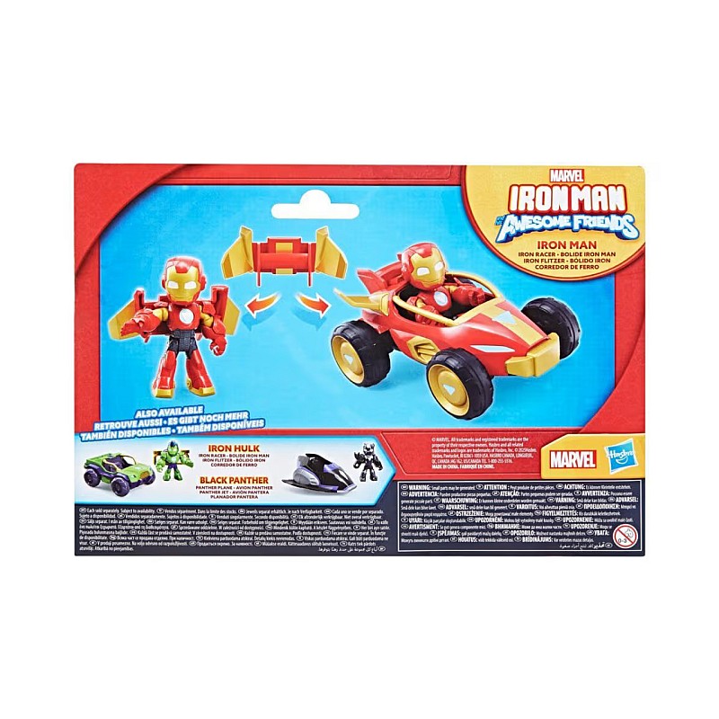 Inspirat de seria Iron Man și Prietenii Săi Minunați de la Disney Jr, incluse 2 accesorii: spoiler si aripi detasabile.