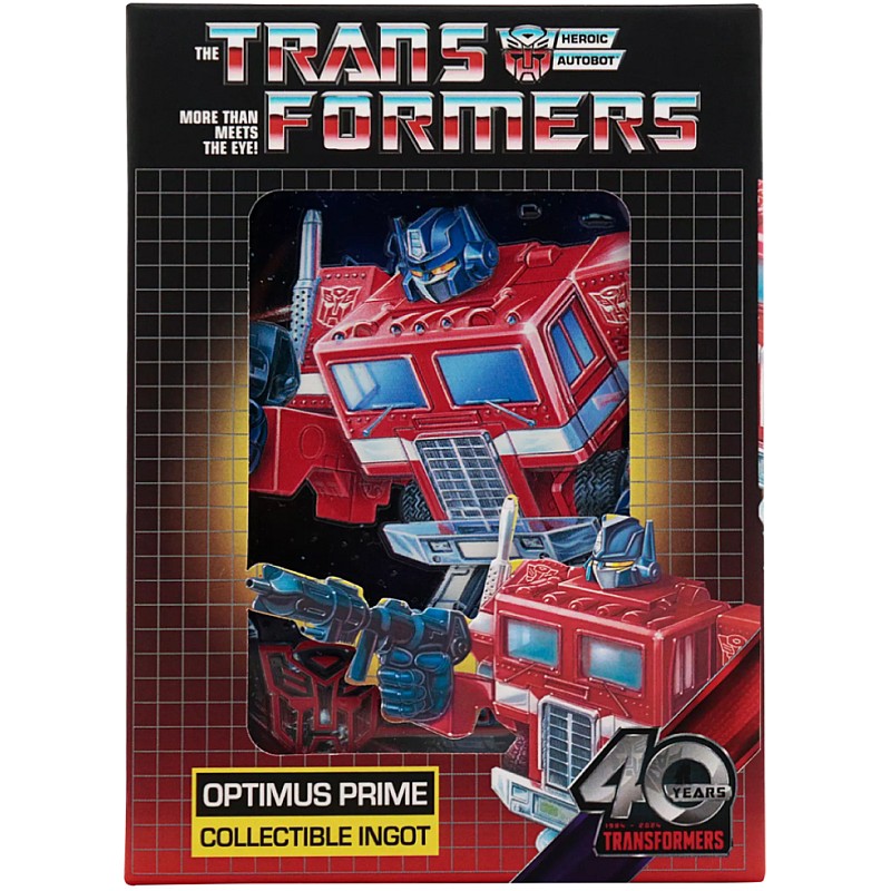 Acest lingou de metal în ediție limitată, cu ilustrații din seria originală de benzi desenate Transformers.