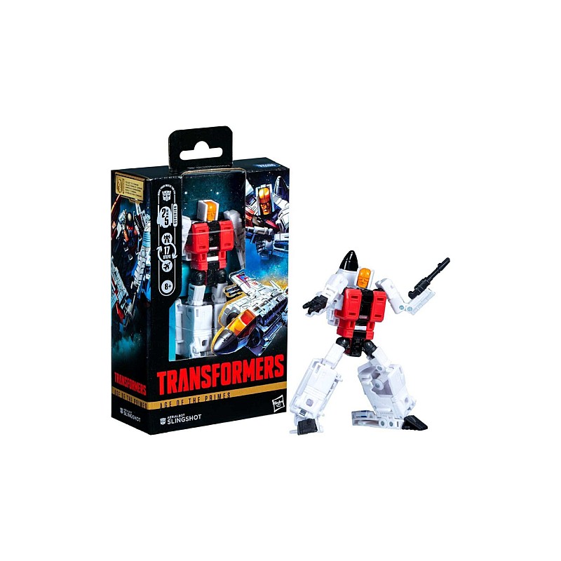 Descoperă puterea originilor cu figurina Transformers: Age of the Primes - Aerialbot Slingshot, parte din clasa Deluxe și inspirată de mitologia fascinantă a primilor roboți din universul Transformers.