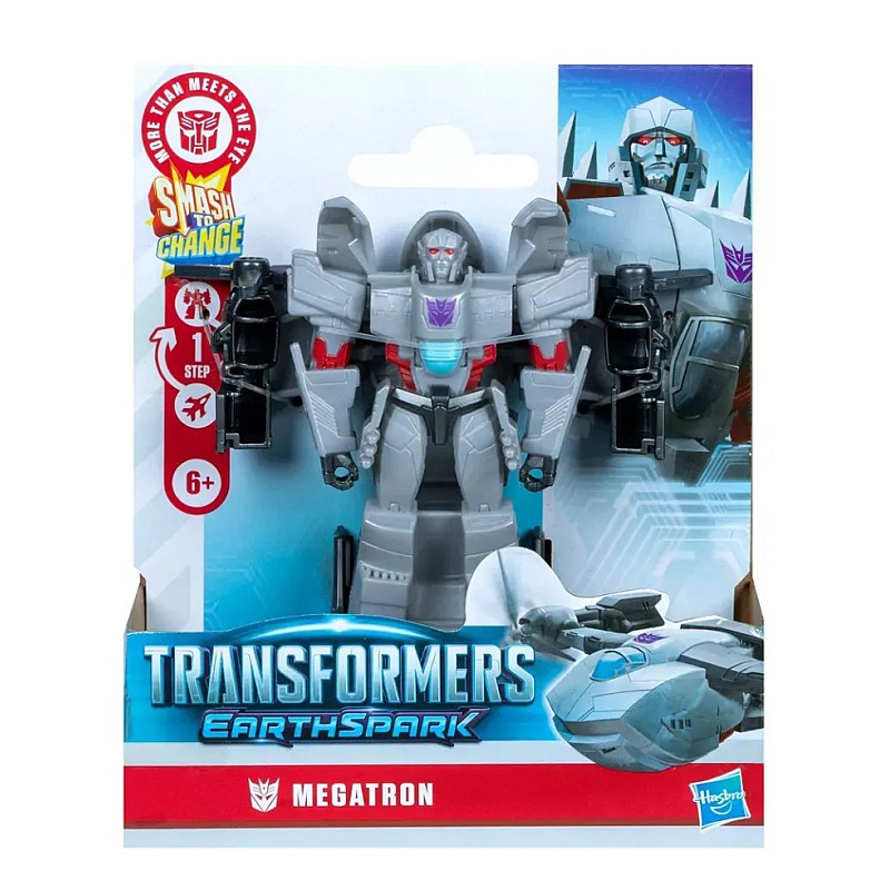 Figurină de acțiune EarthSpark 1-Step Smash Changer Megatron, transformă această figurină Transformers din modul avion în modul robot prin spargerea ei pe o suprafață planăJucăria avion apare într-o jucărie robot!