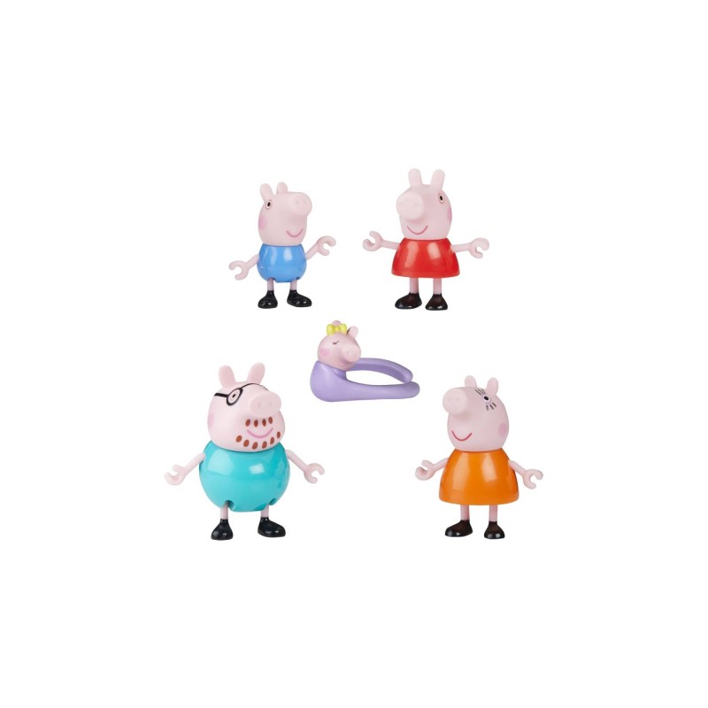Peppa Pig Figures Peppa’s Family Pack este un set de figurine adorabil, ideal pentru fanii micuței purcelușe. Include cinci personaje din familia Pig: Peppa, George, Mummy Pig, Daddy Pig și un bebeluș în port-bebe.
