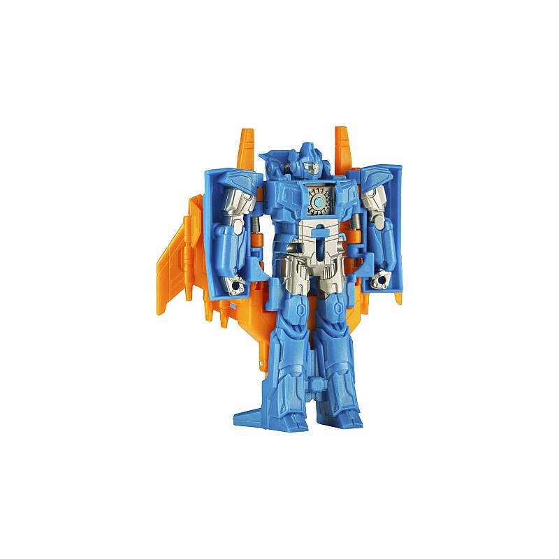 Această figurină se convertește din modul robot în modul jet Cybertronian într-un singur pas.