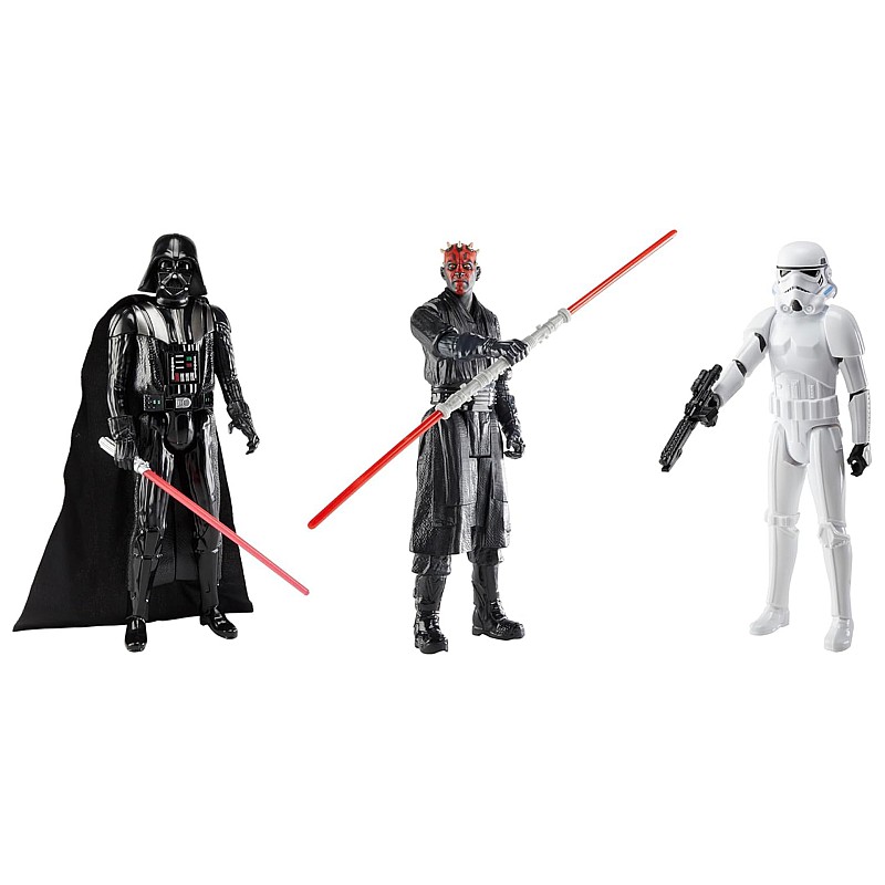 Acest pachet de 3 figurine de acțiune Star Wars conține cei mai populari răufăcători din galaxia Star Wars, Darth Vader, Stormtrooper și Darth Maul.