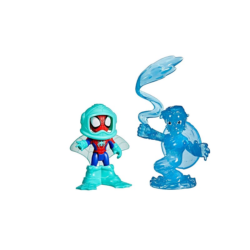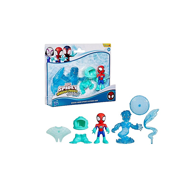 Alătură-te echipei Spidey în cele mai recente aventuri acvatice cu acest set de jucării de colecție Marvel Water-Webs Spidey & Hydro-Man!