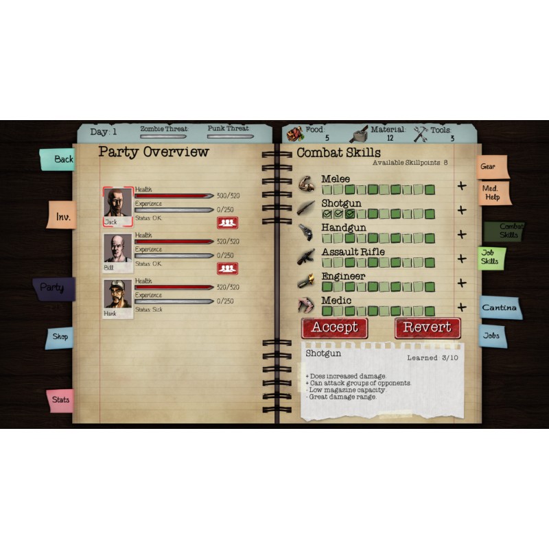 - Amenințarea zombie crește constant, iar bandele de supraviețuitori ostili vă țin în defensivă.