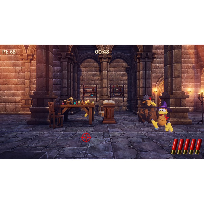 Încarcă rapid muniția pentru a te bucura de o acțiune de tragere maximă, iar găinile vor trebui fie să-și lase penele jos, fie să sfârșească prăjite la proțap!