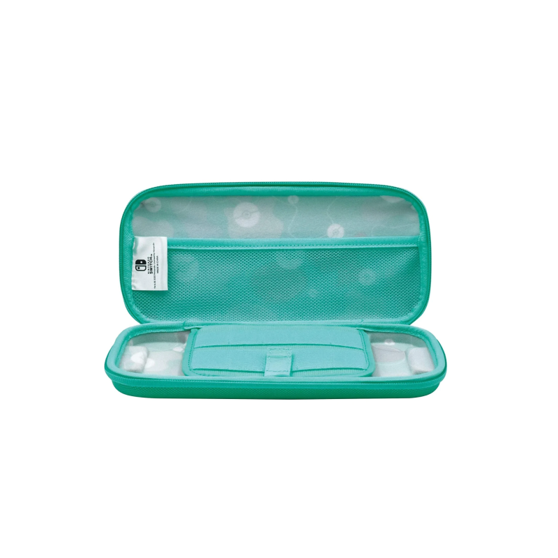 Construcția internă specială ține în siguranță fie Nintendo Switch, fie Switch Lite. Clapeta internă protejează ecranul în timp ce găzduiește până la 10 cărți de joc, iar o husă cu plasă va ține la locul lor micile accesorii.