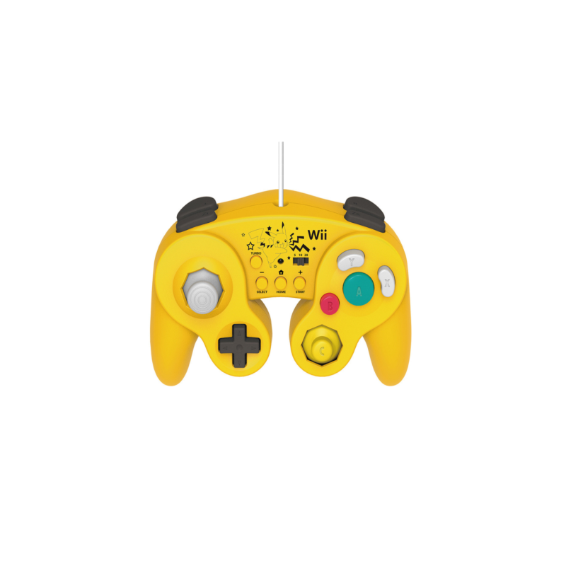 Preia controlul acțiunii cu HORI Battle Pad Turbo pentru Wii U, cu culori și ilustrații cu tema Pikachu.