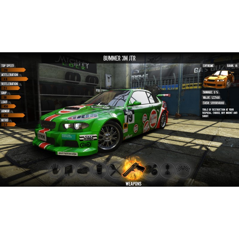 Fă o plimbare cu nervii tari în acest joc de curse de luptă care creează o dependență nebună și care conține o mulțime de vehicule, arme, îmbunătățiri, bonusuri pe circuit și medii.