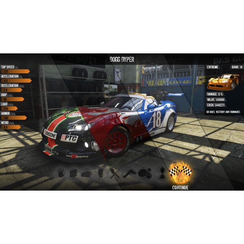 Jucătorii încep cu vehicule cu performanțe scăzute și în curând își croiesc drum până la modele de înaltă performanță, câștigând bani într-o serie de curse hi-octane și bătălii în arenă.